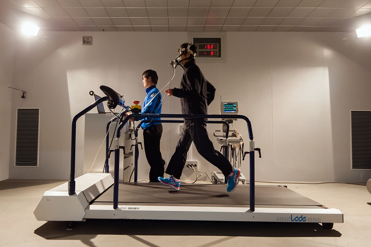 温度や湿度、酸素濃度などをコントロールする「人工気象室」という施設があり、そこでさまざまなランナーに走ってもらいながら、気象という外的要因と人間の身体の変化の関係をデータ化しています。あとは身体の至るところにマーカーを貼り、身体の動きを測定したりなど、たくさんのテストが行われていますね。