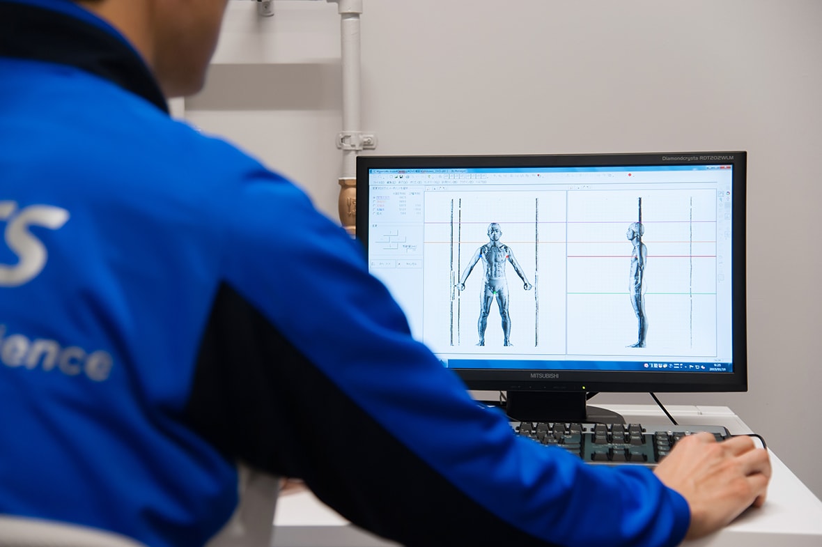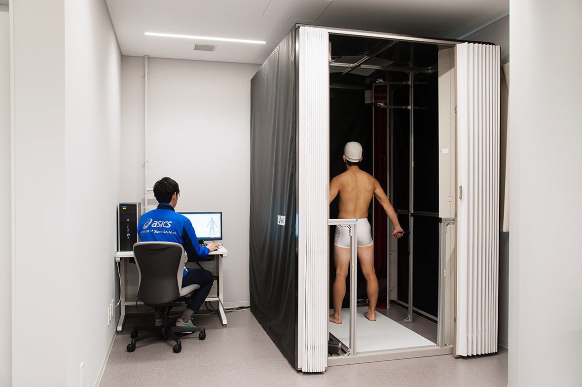 こちらは「アシックススポーツ工学研究所」にある体型測定室での研究の様子。