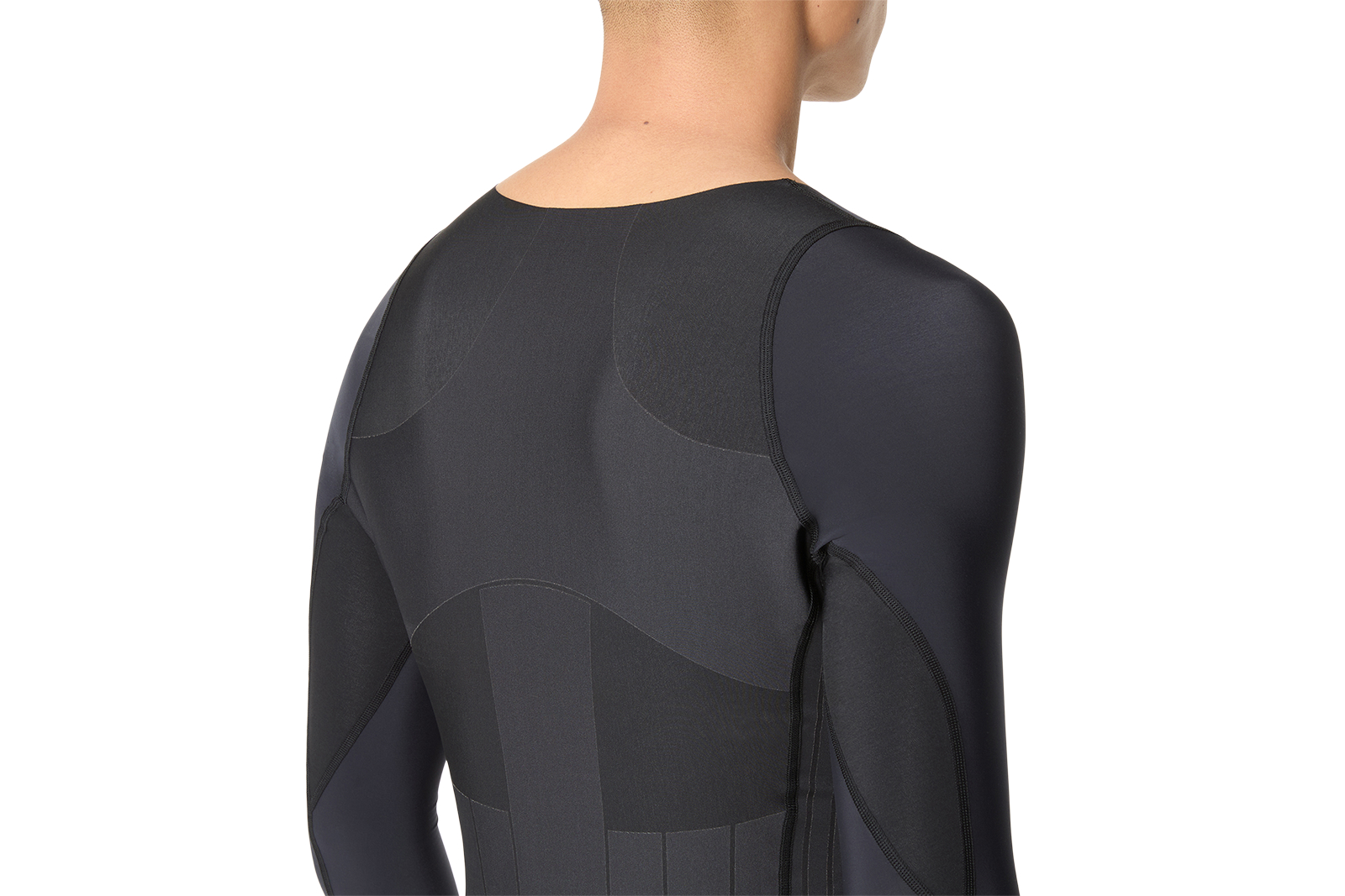 あとは背中の上部も生地を硬くしています。そうすることで肩甲骨を寄せる効果が得られ、いい姿勢をキープできるような設計になっています。